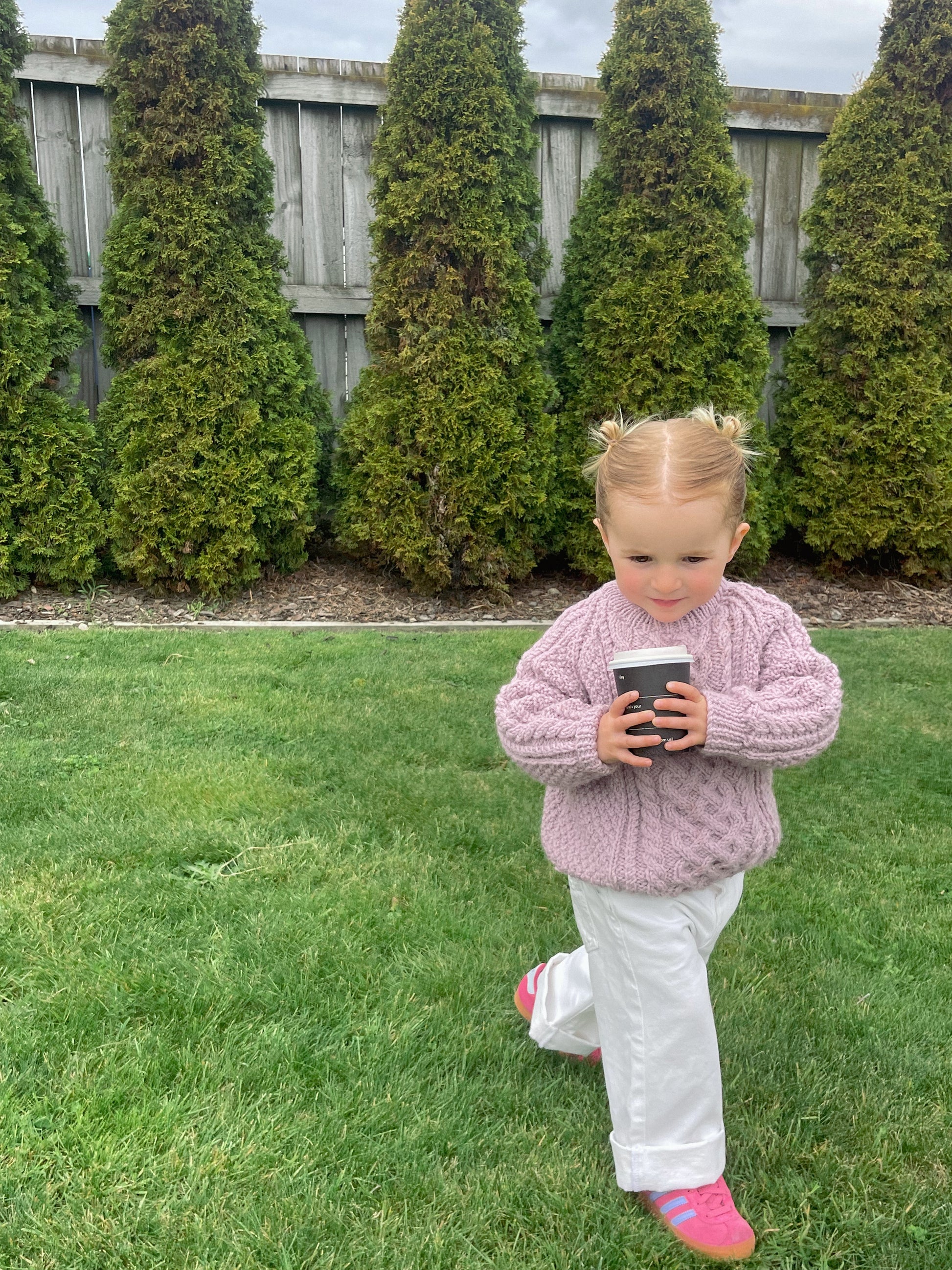 Available in two vintage tones, Oat and Pink – each knit is made to order with the care and attention only hand knitted can bring.